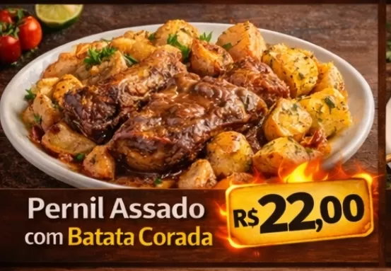 Pernil com Batata Corada, Arroz, Feijão e Farofa